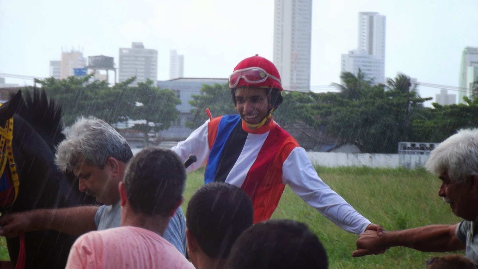 | Muita comemoração do aprendiz D.Rodrigues, na sua estreia vitoriosa no turfe pernambucano |